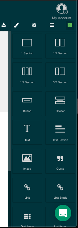 This provides a list of new components that you can drag and drop into the workspace. You can use this to add additional text, images, links and layout components to your email body.