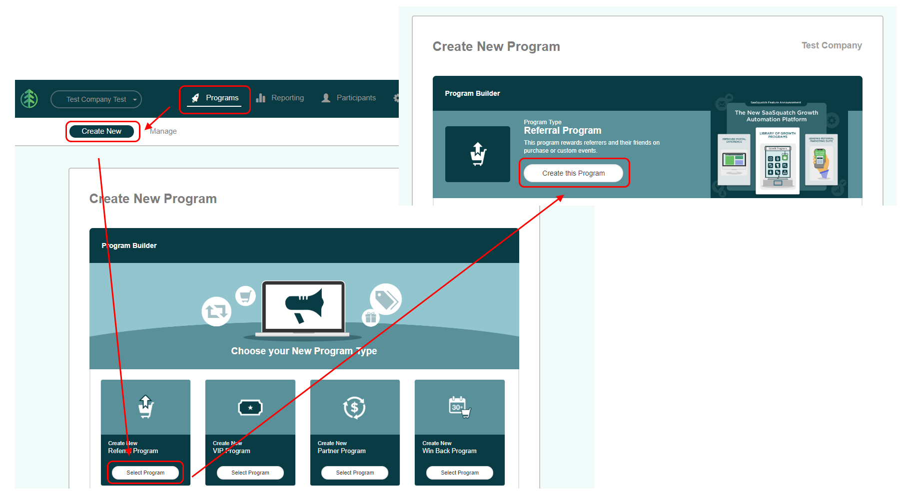 From the Programs section inside the SaaSquatch portal, select the Create New program option from the top left of the page.
