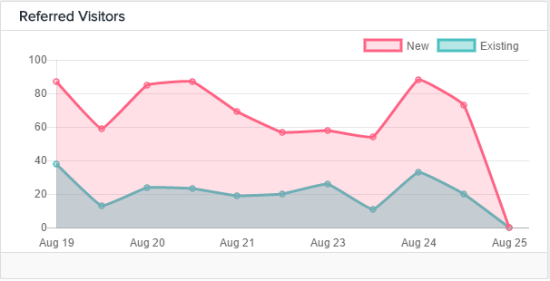 The Unique Visitors information provides a look at how many people were exposed to your referral program through the Referral Widget in your platform. This information can help identify where to increase the visibility of your referral program in your product. Increasing the visibility of your referral program in your product can expose the offer to more of your existing customers, leading to more referrals being shared out.