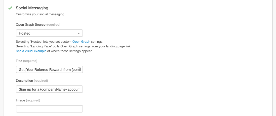 - Share messages: Predefined social or messaging copy that explain the offer and have a clear CTA. Used by your customers to invite friends and family.