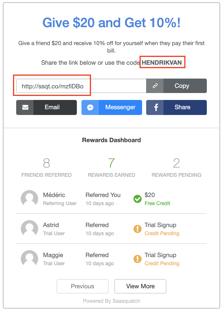 Once the Referred User has signed up for your service or product, you can identify them to SaaSquatch through the Referral Widget and entice them to start making their own referrals.
