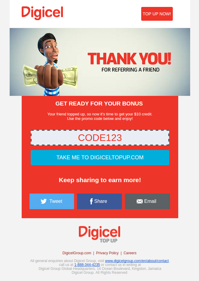- Reiteration of the reward they will receive for being referred