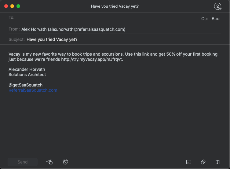 Marketing, blast, or mass emails are a great way to promote your referral program to your existing user base or email subscription list. By providing a list of existing users, SaaSquatch will register them and return an export with their unique share links.