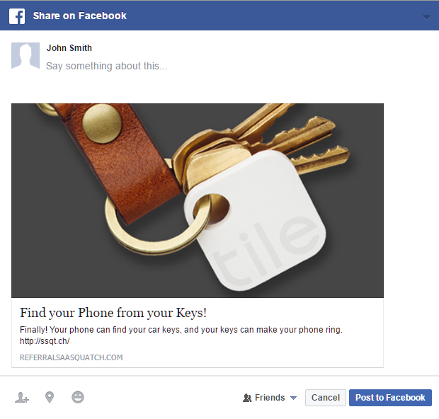 SaaSquatch widget and email themes let you customize Your referral program to allow your users to share their referral link on Facebook, Twitter, or by email with ease. The SaaSquatch social media integration helps reducing the friction for users looking to share their referral link by not requiring users to authorize access to their Facebook or Twitter account in order to share their post.