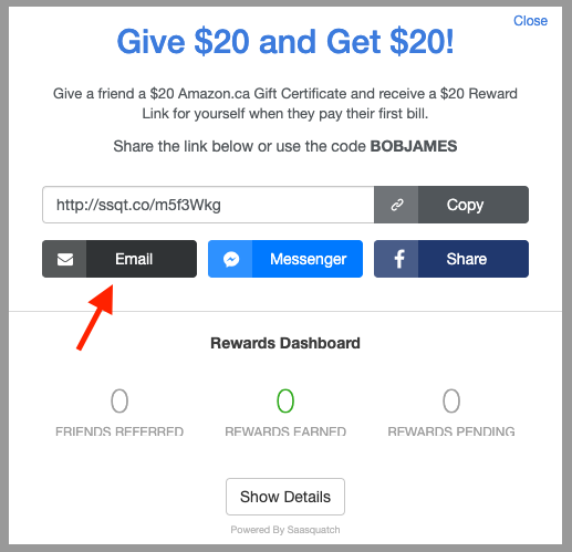 Email Sharing: SaaSquatch lets your users make referrals by letting them send their friends an email.